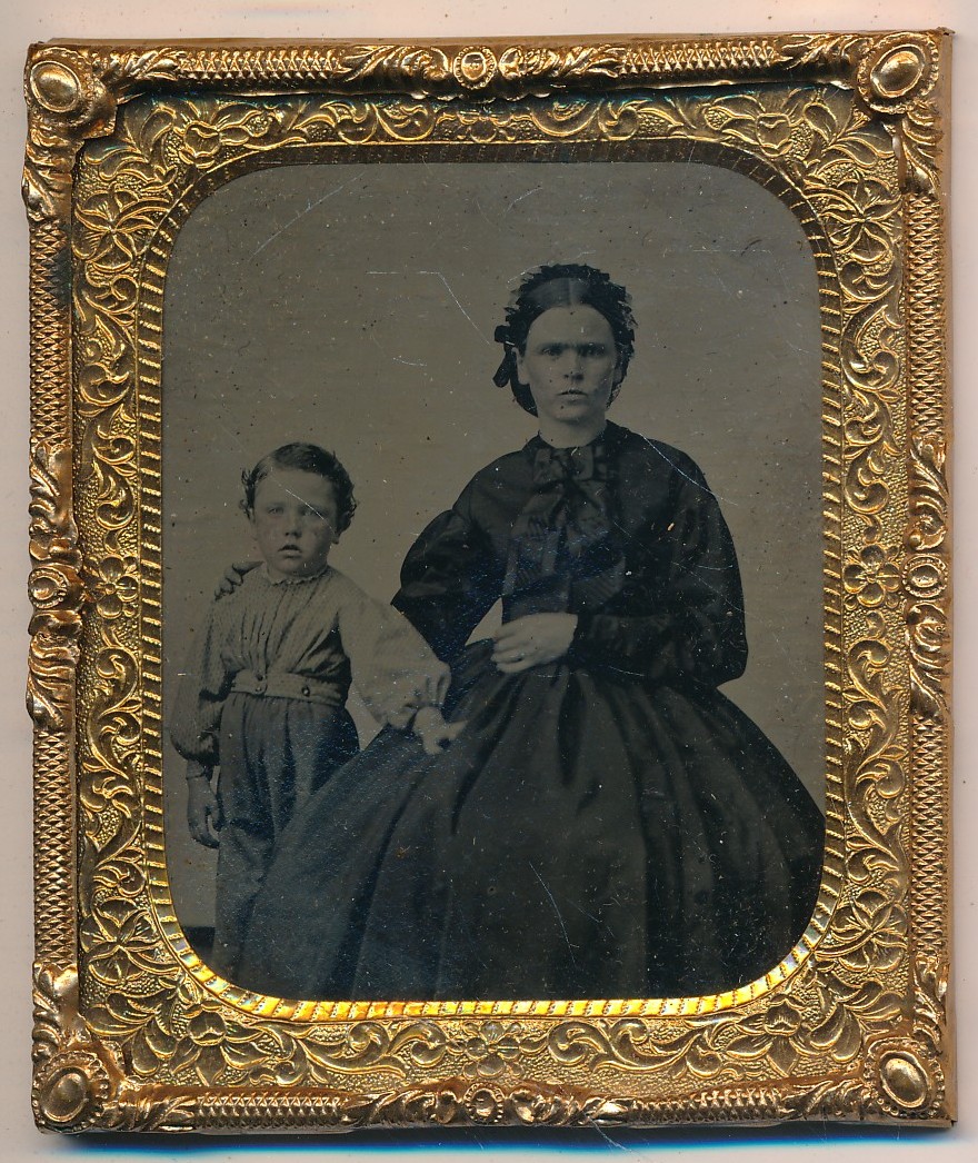 Half Case Ambrotype of Mother and Son
