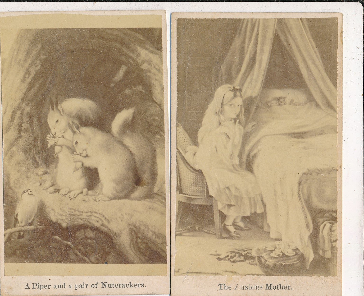 Pair of CDV Album Fillers Squirrels and Little Girl