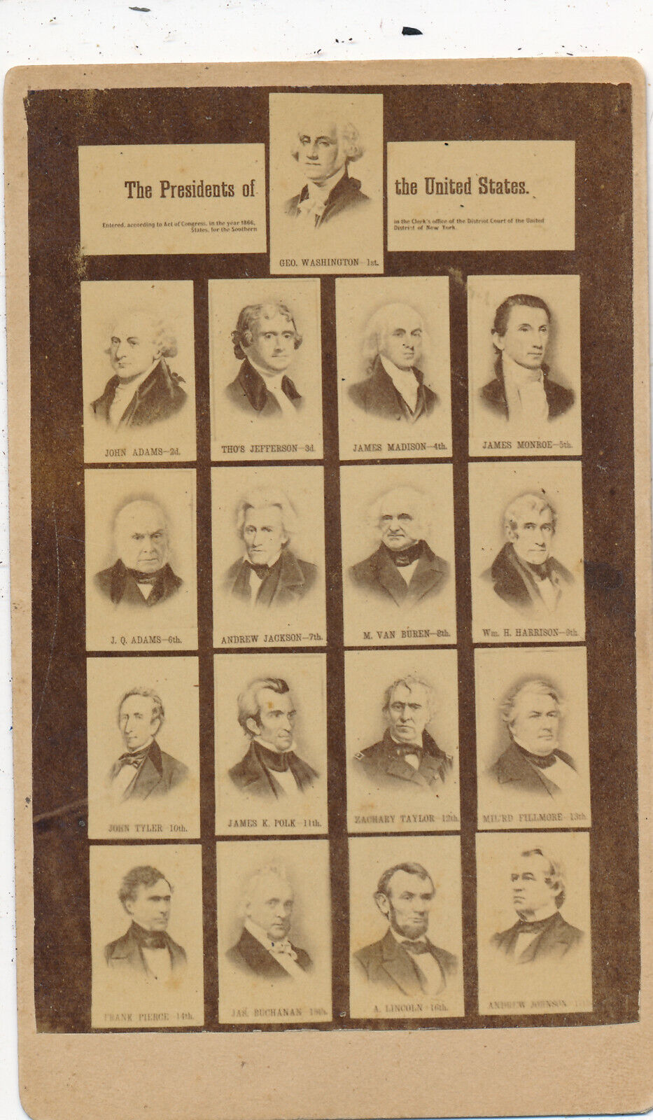 Rare The Presidents of the United States CDV George Washington to Andrew Johnson
