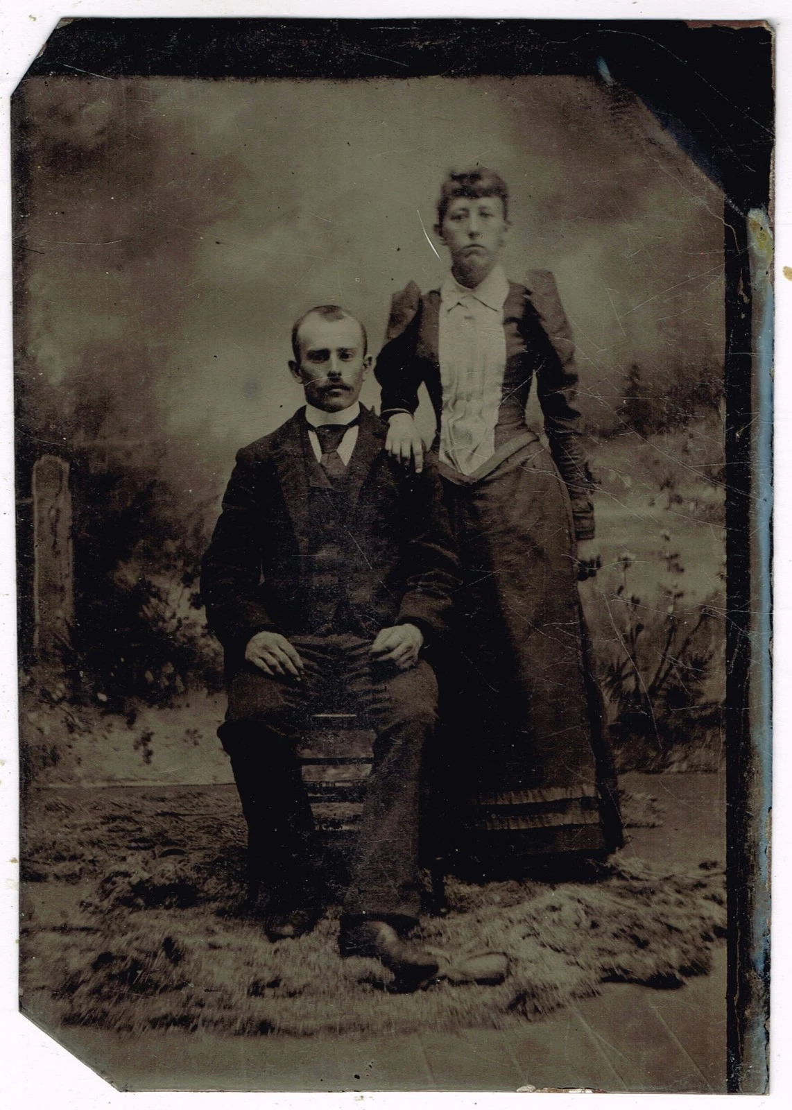Seated Man With Wife Prairie Background Late 1880’s Tintype