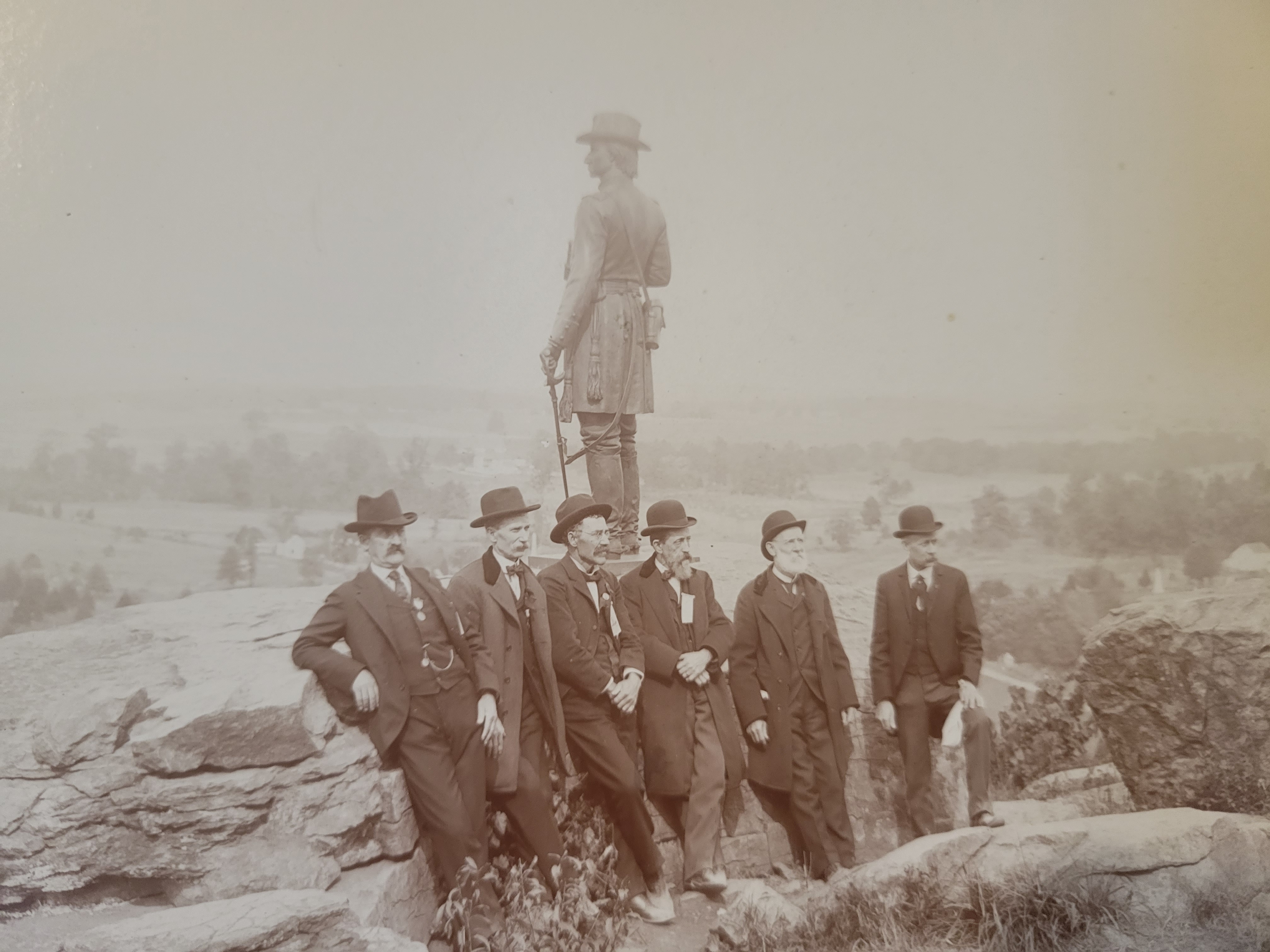 Six Civil War Veterans at Little Round Top in Gettysburg by Statue of General Gouverneur Kemble Warren