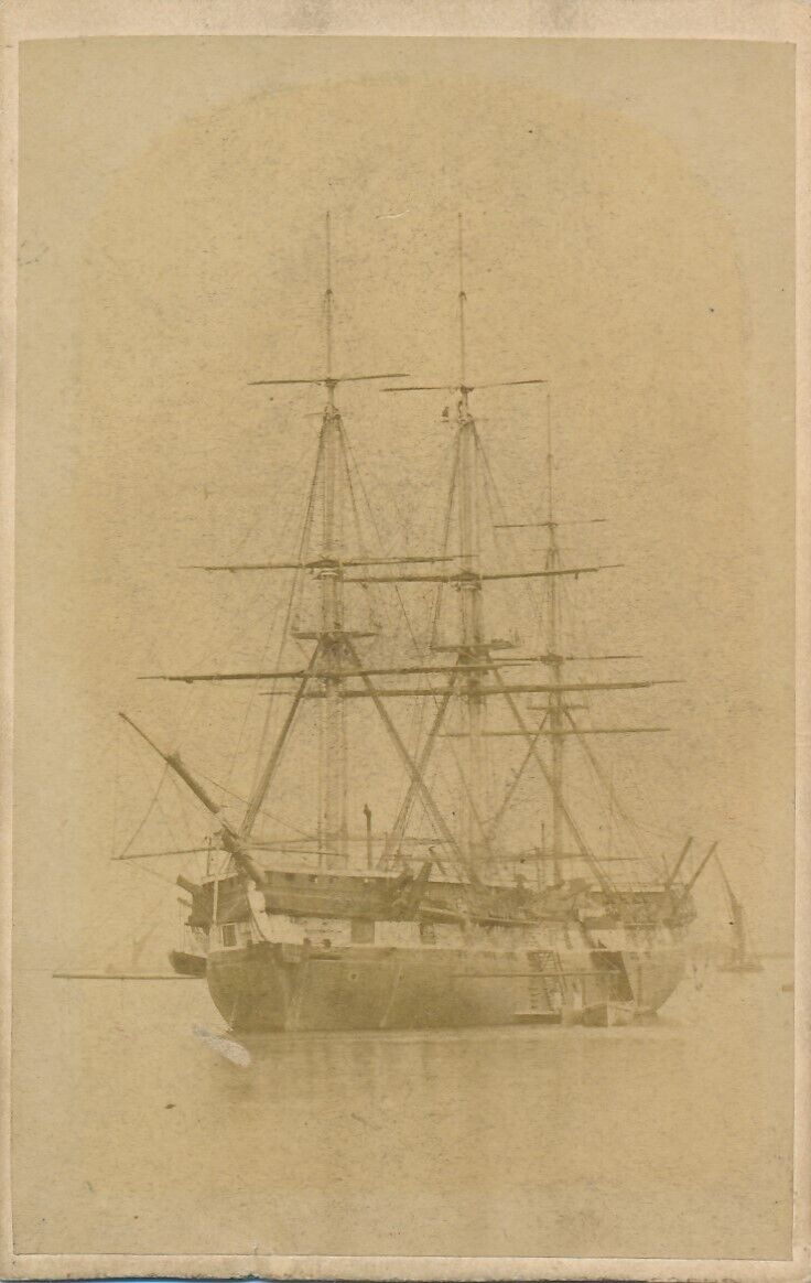 HMS Worcester was a 52-gun 1,500 ton fourth rate frigate of the Royal Navy, the last of six Southampton class ships built, and the fifth naval ship to bear the name. Ordered in 1818, she was laid down in Deptford Dockyard in 1820 but then delayed, spending 23 years on the stocks before being launched in October 1843 and completed at Sheerness Dockyard in November.The Worcester was laid up in the Nore by the 1860s when the Royal Navy was starting to replace their fleet of surplus ‘wooden walls’ with iron clad vessels. Then in 1862, London ship owners seeking to found a training college approached the Admiralty for the loan of a suitable ship, and so she was lent as a training ship to form the Thames Marine Officer Training School (later known as the Thames Nautical Training College), with nearly £1,000 spent on her conversion. In that role she was moored on the Thames at Blackwall Reach, Erith by 1863, at Southend in 1869 and finally at Greenhithe in 1871.By the mid-1870s the Worcester had become too small for the growing number of cadets, and so she was sold for breaking up in 1885 and succeeded by the renamed ex-HMS Frederick William.This lot includes a CDV of the HMS Worcester and cadets L. Spearman, W. Arnold, O.G. Brown, L.B. Troutham, Dewey and Hardinge, R. Sewell, J.A. Esdaile. 11 CDV’s in all.