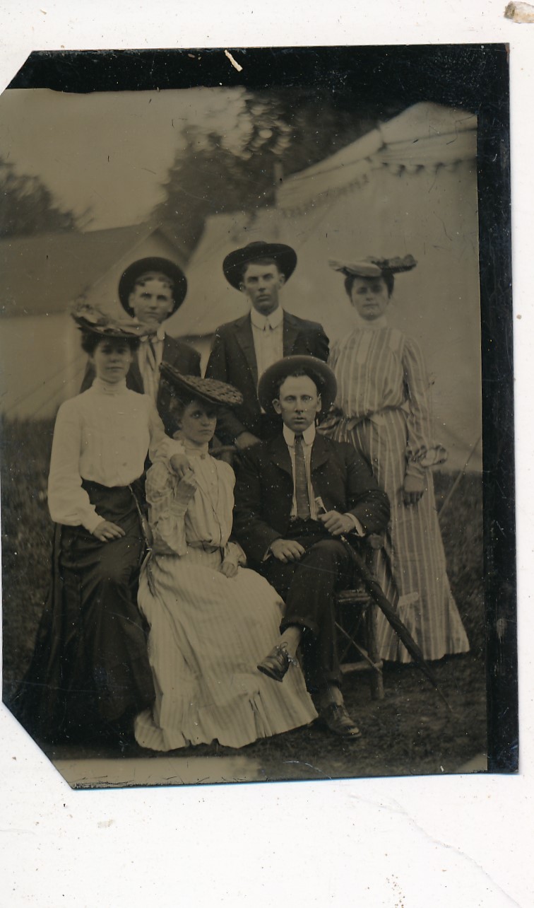 Three Couples Outside by Tent 1890’s Tintype